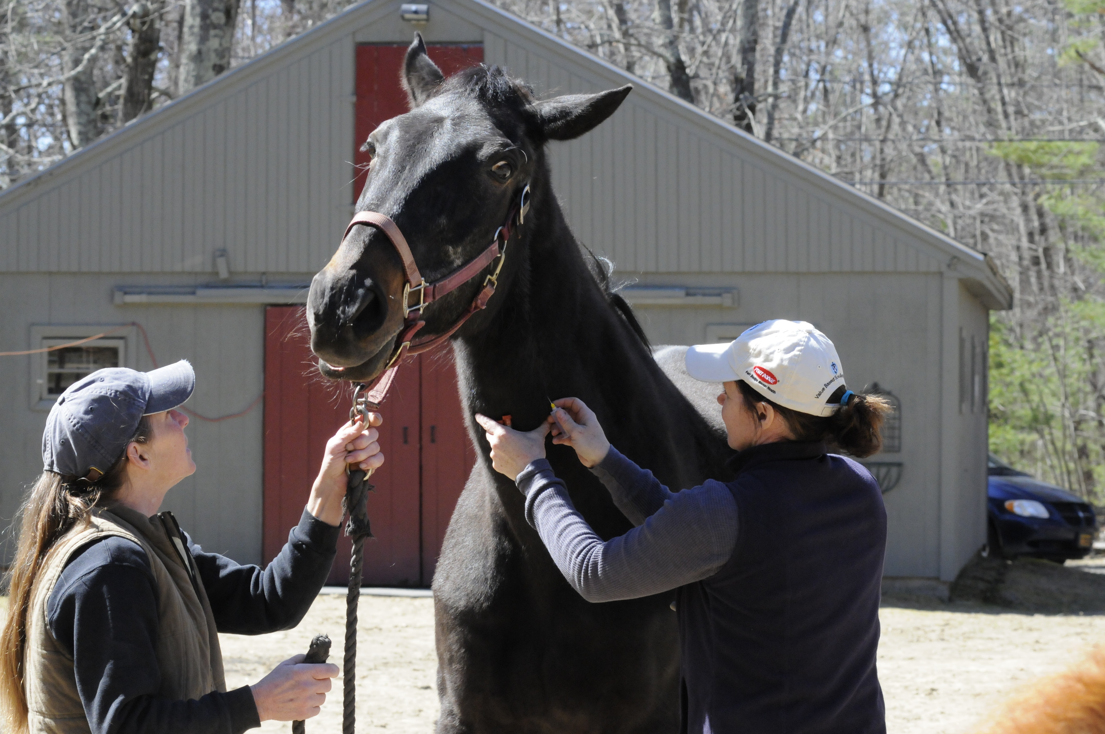 On the morning of an appointment, Dr. Wright wants to keep the horse’s routine as close to normal as possible. Feed and turn out around the same time and bring your horse in only within the hour of the scheduled appointment.