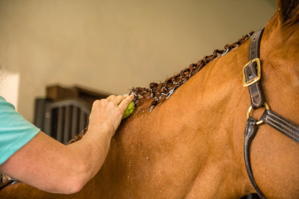 The main purpose of braiding is to enhance the horse’s appearance. A good braid job—neat, tidy and uniform—shows the judge that you are a winner. A bad one—loose, messy and unkempt—is distracting and gives the impression that you don’t care about your presentation. Braiding is all about the economy of motion and getting into a rhythm. To do a good braid job takes practice, but it doesn’t have to take so long that you’re tired and frustrated by the end of it. Instead, it’s about having a sensible and effective system that doesn’t wear you out. Eventually, your muscle memory will take over and braiding will become instinctual. In this article, I’ll explain not only how to make beautiful mane and forelock braids for the hunter ring but how to do so methodically and efficiently.
