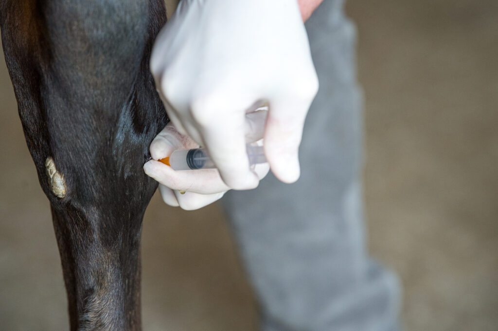 - Regenerative therapies. These treatments utilize certain substances in a horse’s own blood to deal with arthritis. In each case, processing a blood sample yields a concentration of components that are extracted and then injected into a joint to prevent further cartilage damage and possibly reverse it. These therapies include: