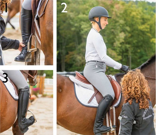 After analyzing your position, try to compare it to successful upper-level riders—in your own barn or at competitions. Watch how their base of support stays the same throughout an entire ride. Then try to mimic their riding styles during your own practice.