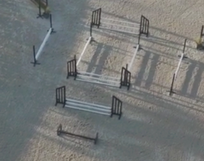 “This exercise is designed to teach horses how to create their own shape, how to gauge the jumps themselves, and eventually they will learn their own pace needed for the exercise.