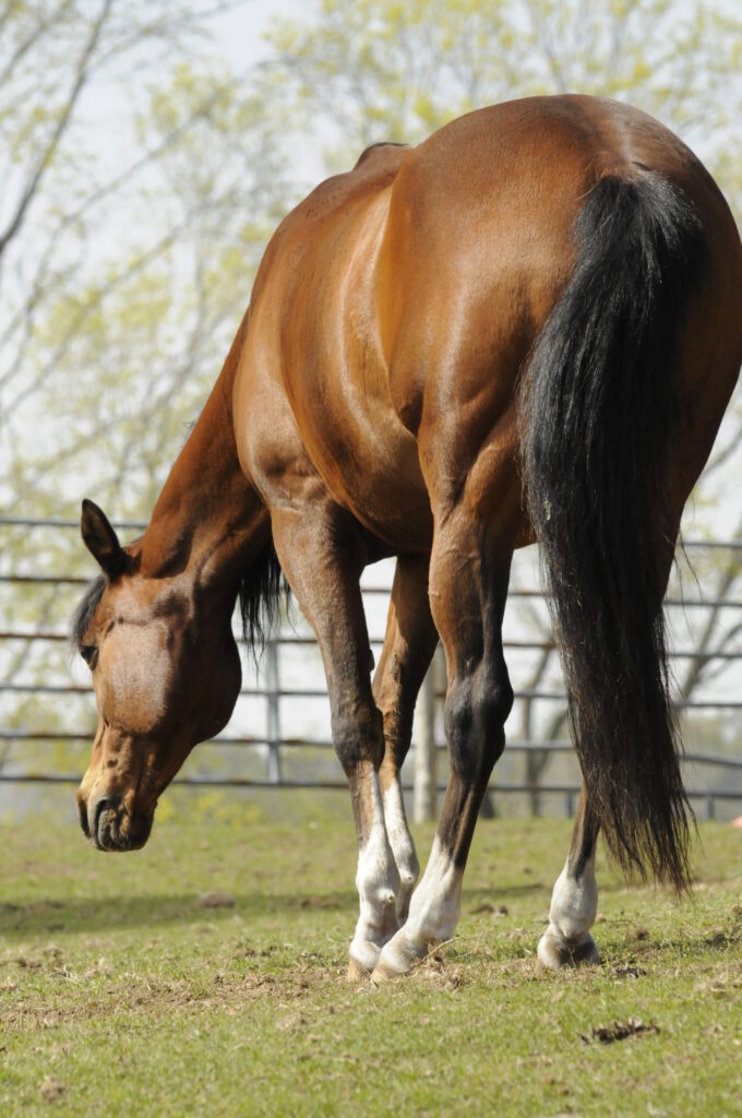 What’s known: Researchers at the University of Minnesota have been studying RER in Thoroughbreds and Standardbreds. “They show similar signs, but the precise mechanisms may be different,” Dr. McCue says. The condition seems to be moderately heritable in both breeds. “A good portion of the risk is genetic, but other factors determine whether the individual develops the problem,” she says. Besides work level, triggers include a nervous temperament and stressful conditions. Fillies are more likely than colts to develop the disorder. Diet—especially large amounts of grain or sweet feed—also seems to be a factor. Signs often improve with changes in exercise, diet and management.