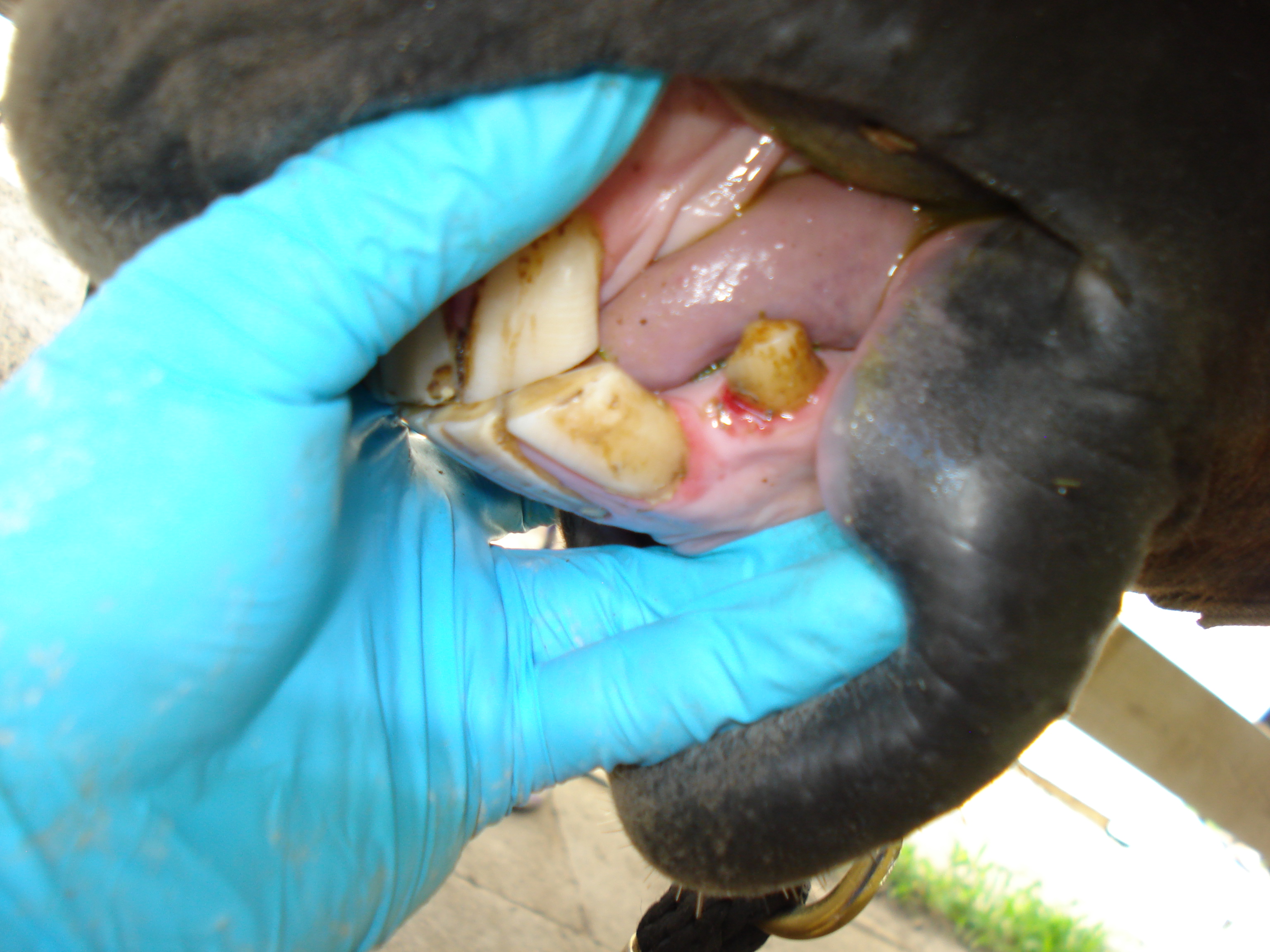 If imbalance advances far enough so that feed gets packed between teeth, then gingivitis, or inflammation of the gums, can set in. Gingivitis usually becomes chronic as the feed material is degraded by bacteria. The gingiva—gum—will lose some of its attachment to the tooth, which usually results in an even deeper space for feed material to become trapped in. Eventually, this can break down the periodontal ligament holding the tooth in place, loosening the tooth. This process is quite painful and can be the reason many horses are head shy or react to oral examination and floating, even with adequate sedation. If specific upper teeth develop infection around the roots, the potential for sinus infection can also exist.