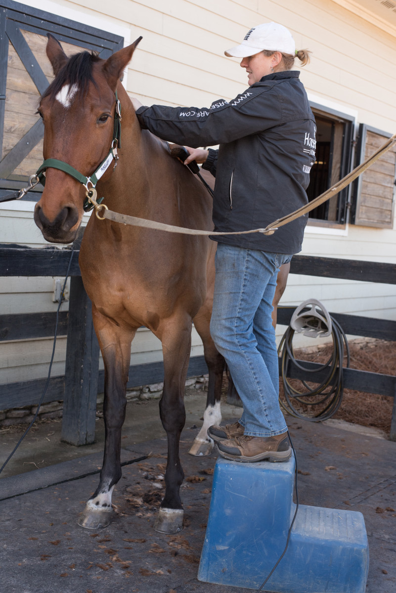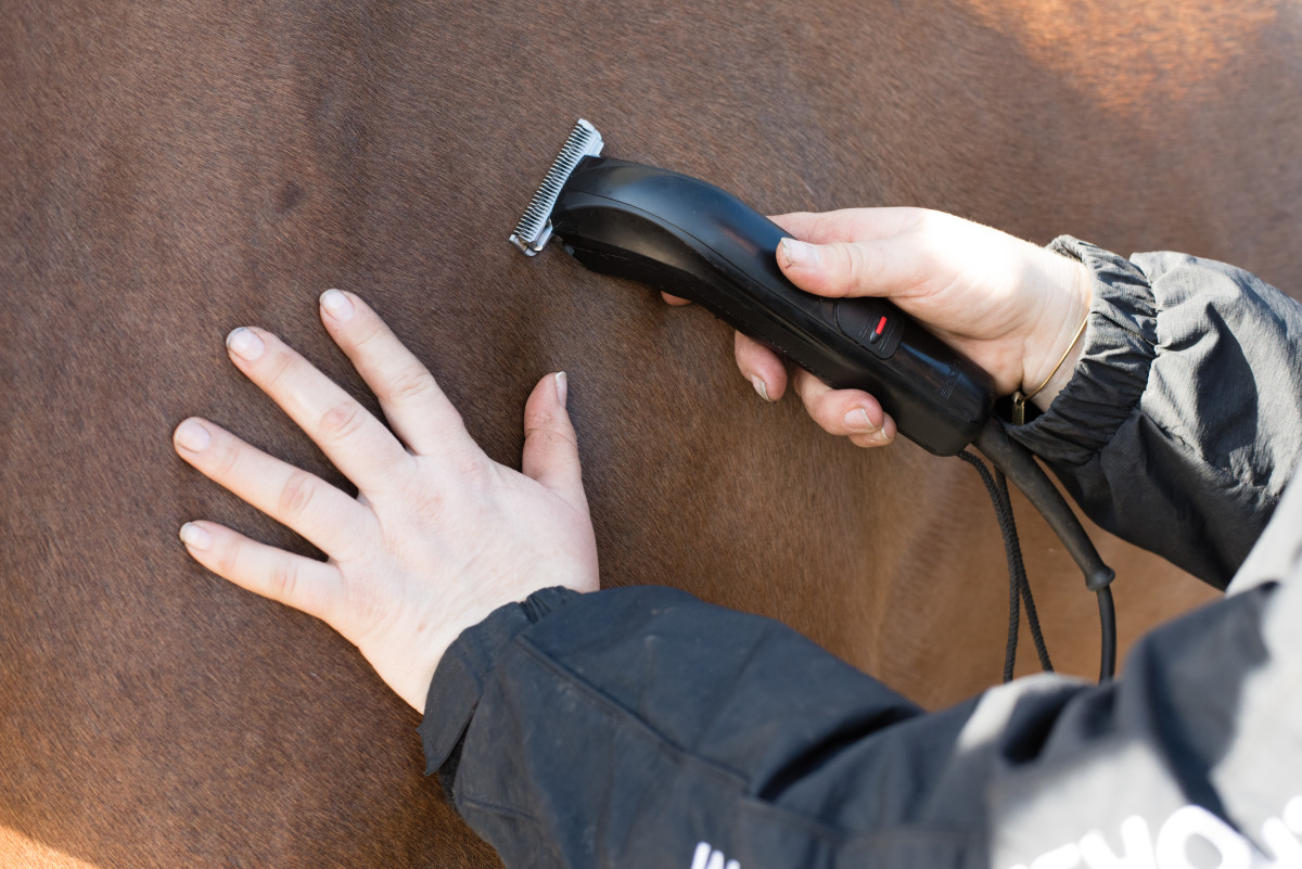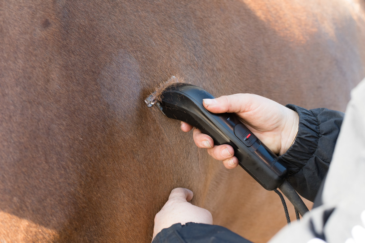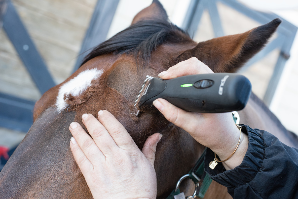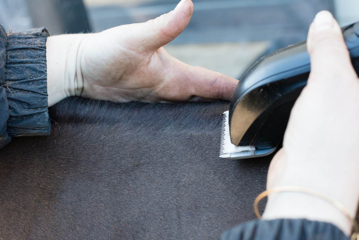 If you’re using corded clippers, always run the cord strategically around a mounting block to eliminate any risk of your horse stepping on it. Metal shoes and electrical cords don’t mix. Never pull the cord over his back, between his legs or underneath his belly. The feeling of the cord can be very spooky for horses
