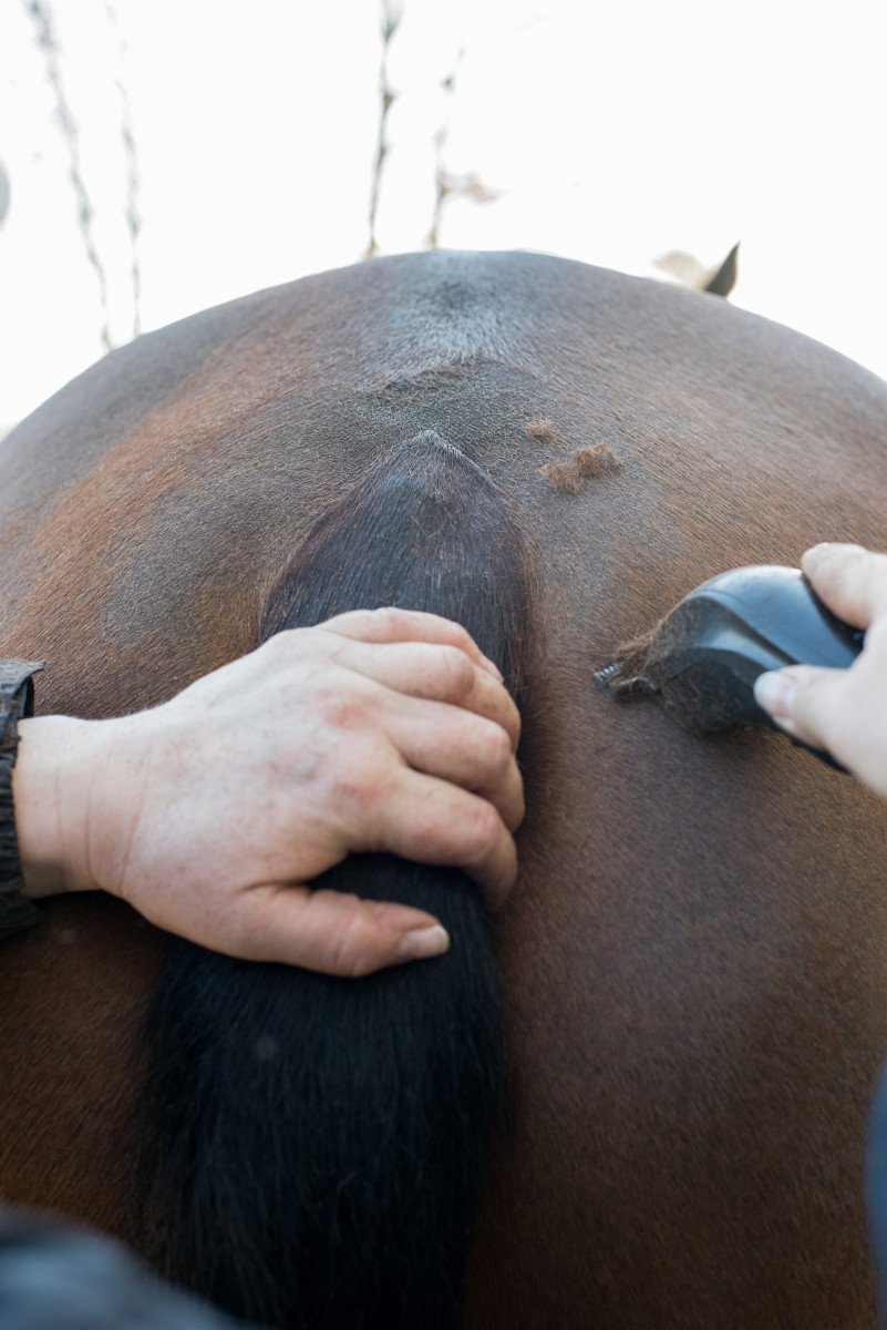 9. While clipping the hind legs, keep a hold of the tail with your free hand, not just to encourage your horse to shift his weight onto the foot you’re clipping, but also to …