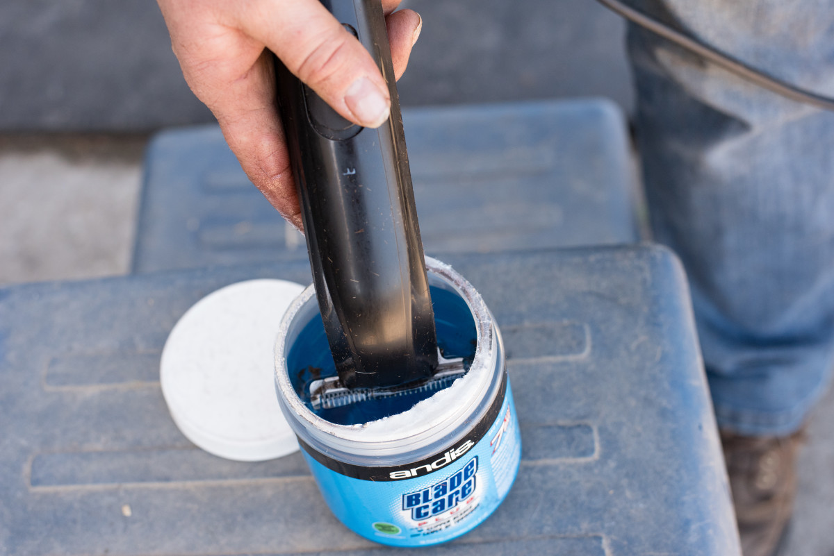 *Note: You can use an all-in-one lubricant/cleaner/coolant twice during the process—once after finishing one side of your horse and then again at the end of the job. I don’t recommend using it more frequently than that, though, because it can rust the blades over time. Rely more heavily on your regular oil to keep the clippers running efficiently.