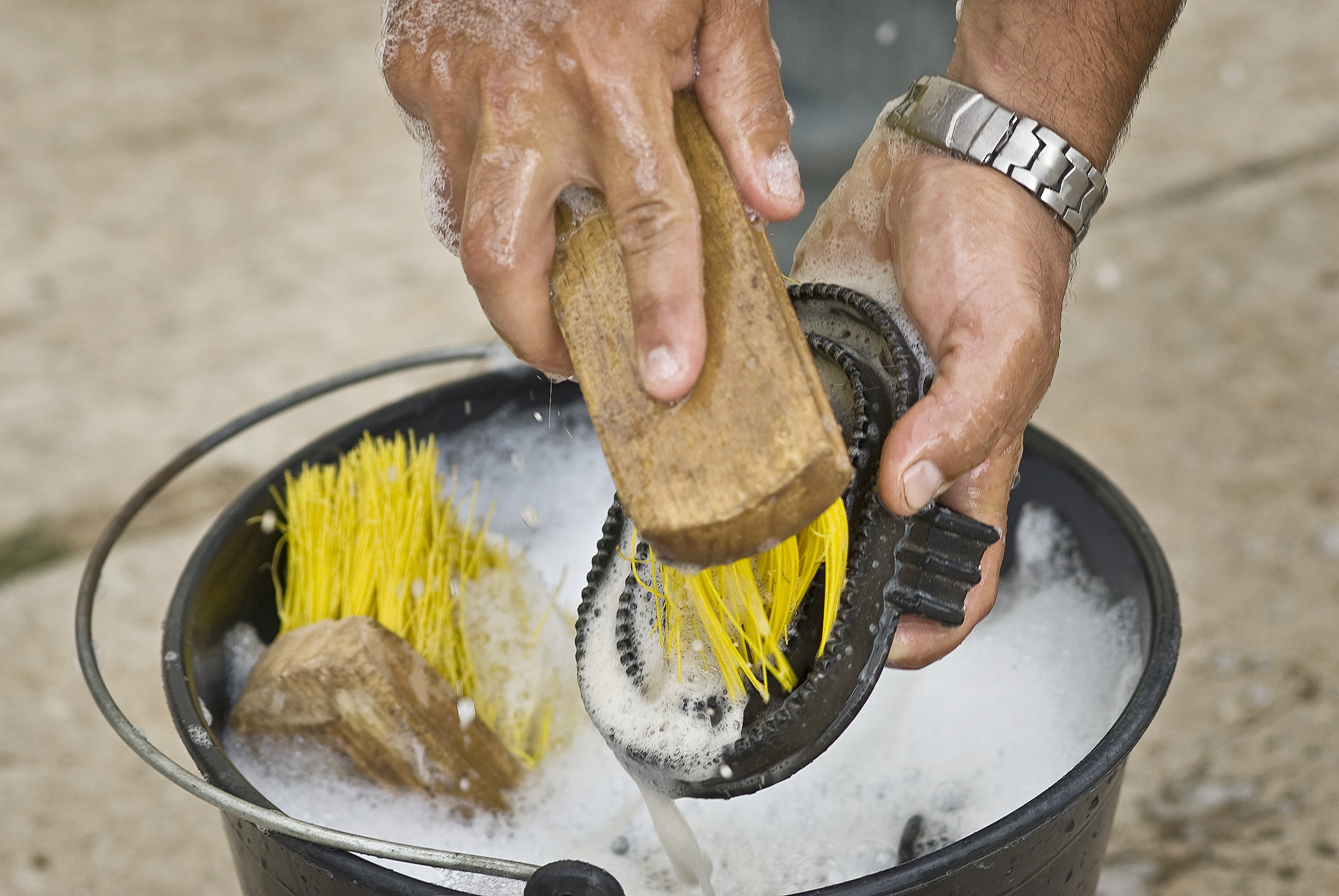 “Every few days, the horses should get the minimum of a curry comb and a brush over their whole bodies, even the retired or pasture-boarded horses,” she continues. “You don’t have to bring them in and make them pretty, just get the dirt off. It’s a good time to make sure there is nothing there and break up the hairs so they don’t get matted and funky underneath.”
