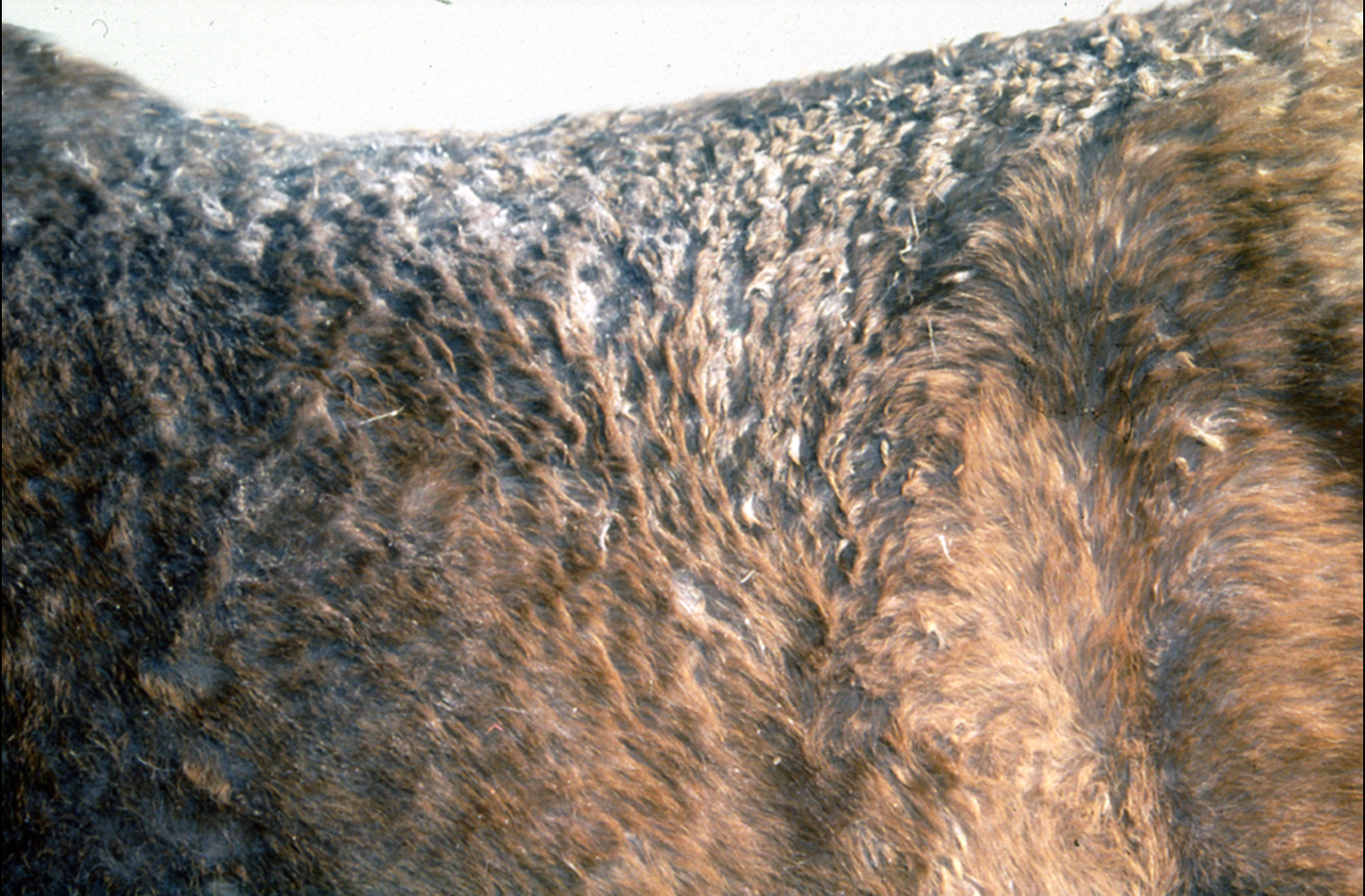 Dermatophilosis is caused by the bacterium Dermatophilus congolensis, a microorganism found on the skin of a variety of mammals under normal circumstances but which can become aggravated when wet and cause infection, according to William Miller, VMD, DACVD, a veterinary dermatologist at the Cornell University College of Veterinary Medicine. Highly contagious and potentially painful in extreme cases, this disease should be treated immediately but can be easily prevented through good grooming practices and attentive horse care.