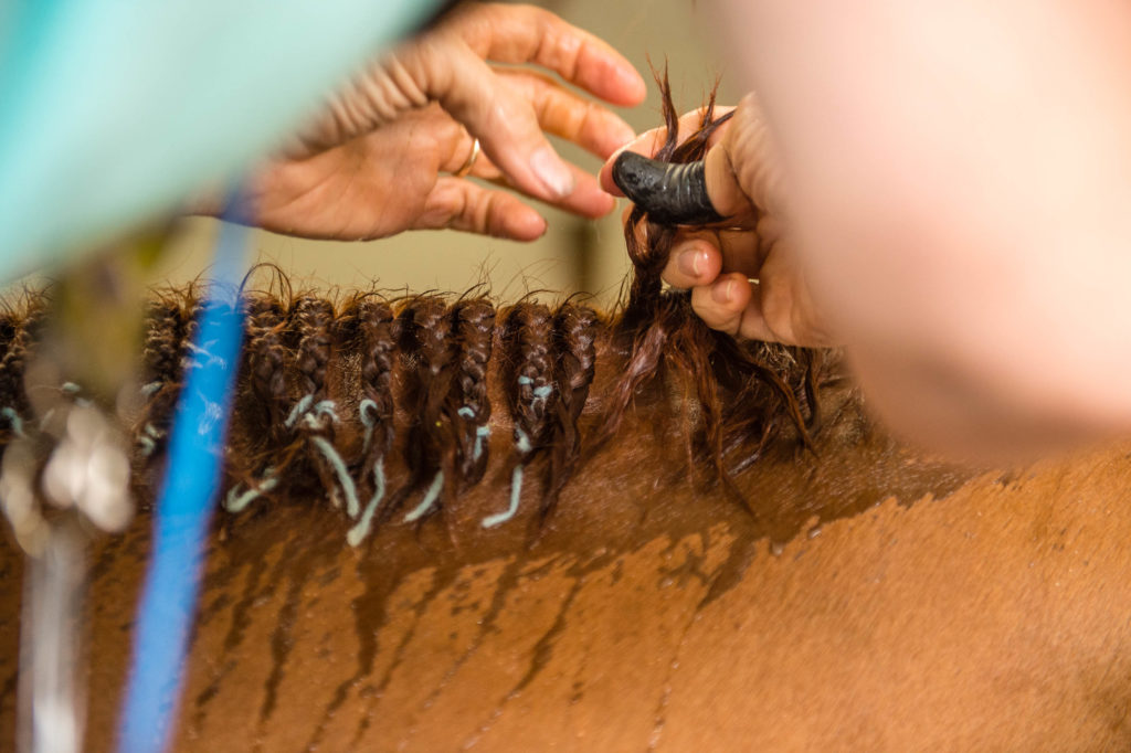 The main purpose of braiding is to enhance the horse’s appearance. A good braid job—neat, tidy and uniform—shows the judge that you are a winner. A bad one—loose, messy and unkempt—is distracting and gives the impression that you don’t care about your presentation. Braiding is all about the economy of motion and getting into a rhythm. To do a good braid job takes practice, but it doesn’t have to take so long that you’re tired and frustrated by the end of it. Instead, it’s about having a sensible and effective system that doesn’t wear you out. Eventually, your muscle memory will take over and braiding will become instinctual. In this article, I’ll explain not only how to make beautiful mane and forelock braids for the hunter ring but how to do so methodically and efficiently.