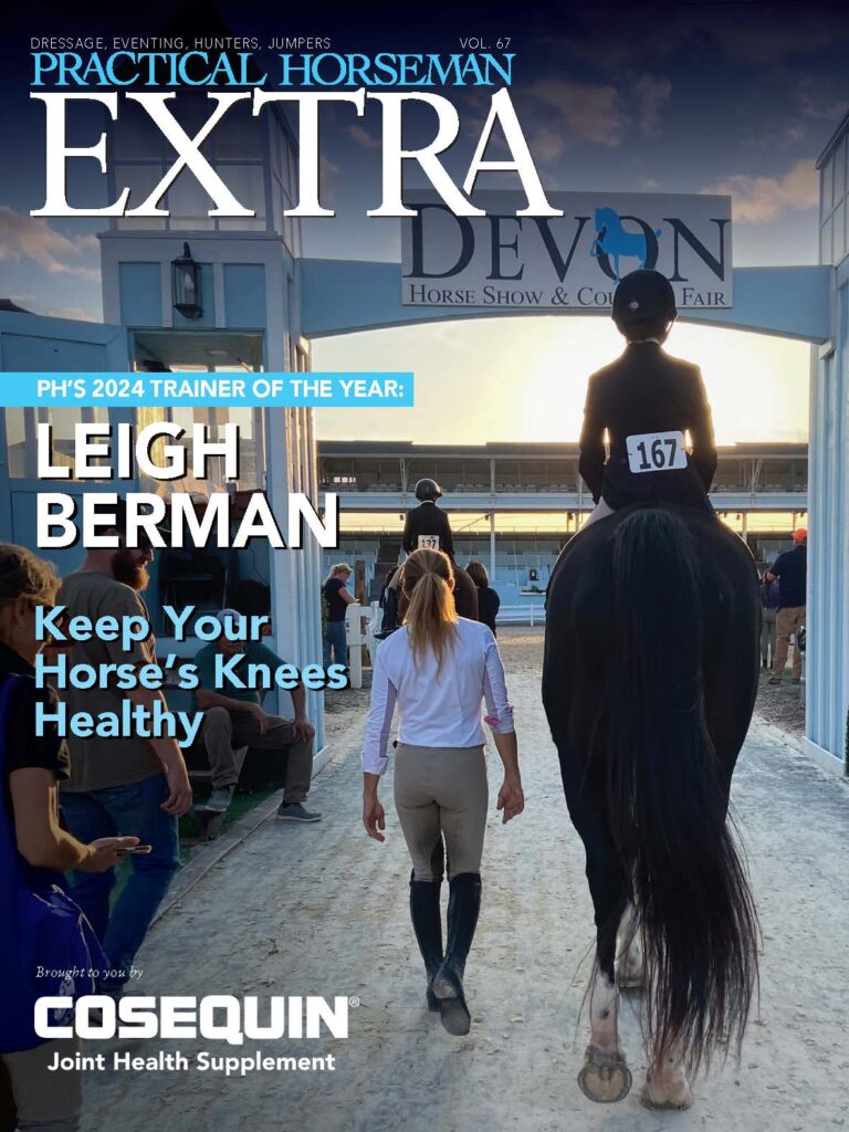 Hunter/jumper trainer Leigh Berman, who owns and operates Two Bit Farm in Boyerstown, Pennsylvania, was named the 2024 Practical Horseman Trainer of the Year in recognition for her outstanding contributions to the equine industry. Plus, healthy knees are a must for sporthorses; learn more about common knee issues and how to prevent them from becoming chronic.