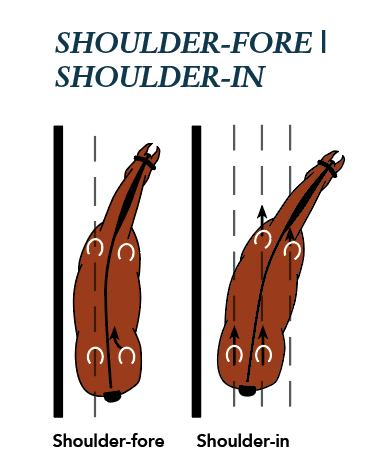 The most common mistake I see in shoulder-fore and shoulder-in is the horse comes off the rail too much, so focus on preventing that with your inside leg and outside rein.